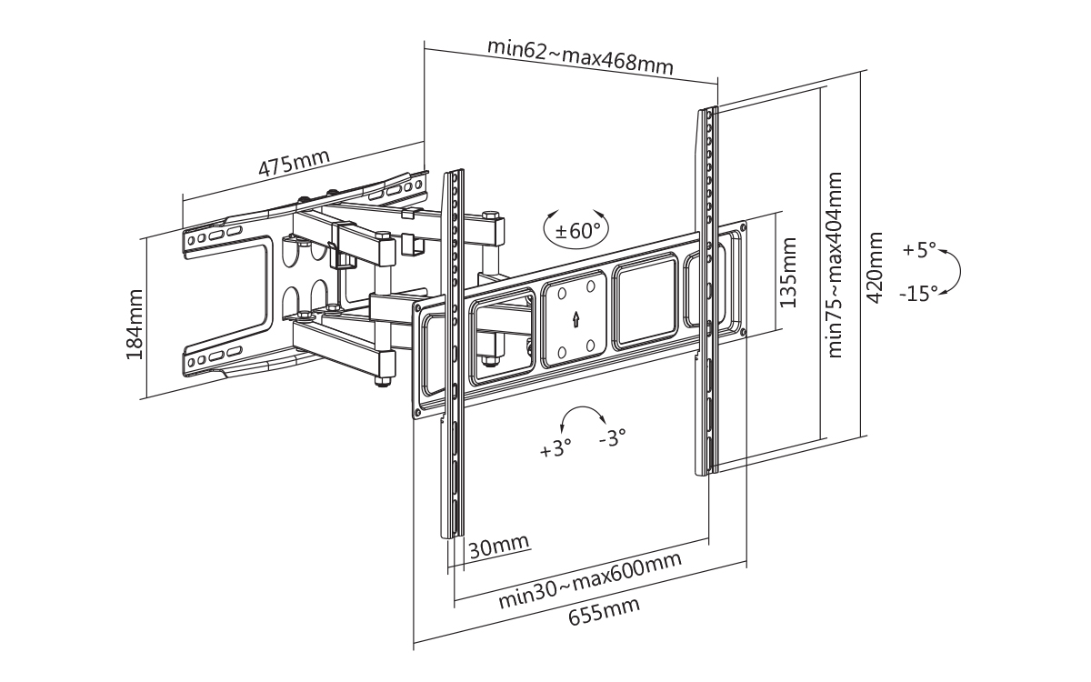 Swivel Wall Mount 55"-65" | SuperB | FREE Delivery & Installation | 40kg