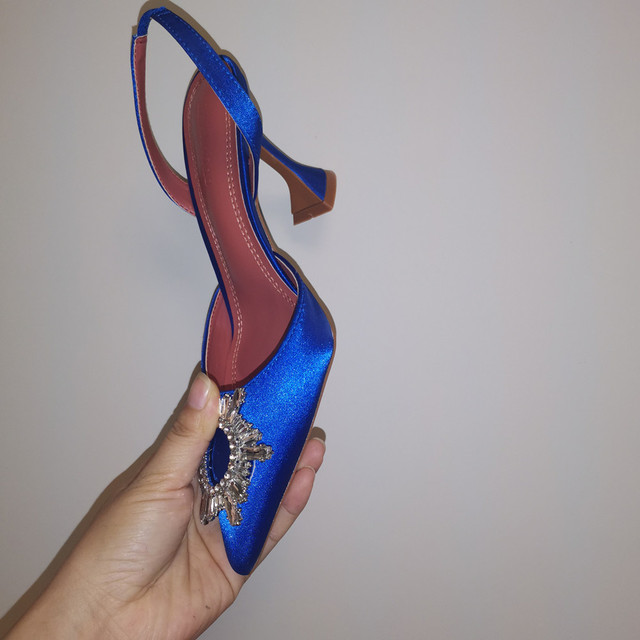 Brand women Pumps Big Size 34-42 Women Pumps Silk Satin Pointy Toe Rhinestone Crystal High Heels Shoes Slip On Women Wedding Pumps Sandal