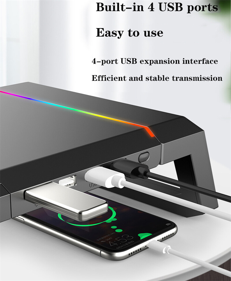 JDB RGB laptop stand monitor increase rack multi-function monitor stand built-in 4 port usb interface built-in mobile phone stand tablet stand