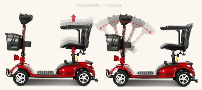 24v 12a lead-acid battery, 250w motor. The seat can be rotated 360 degrees and the armrest can be raised.speed:2-8km/h. maximum load 120kg.