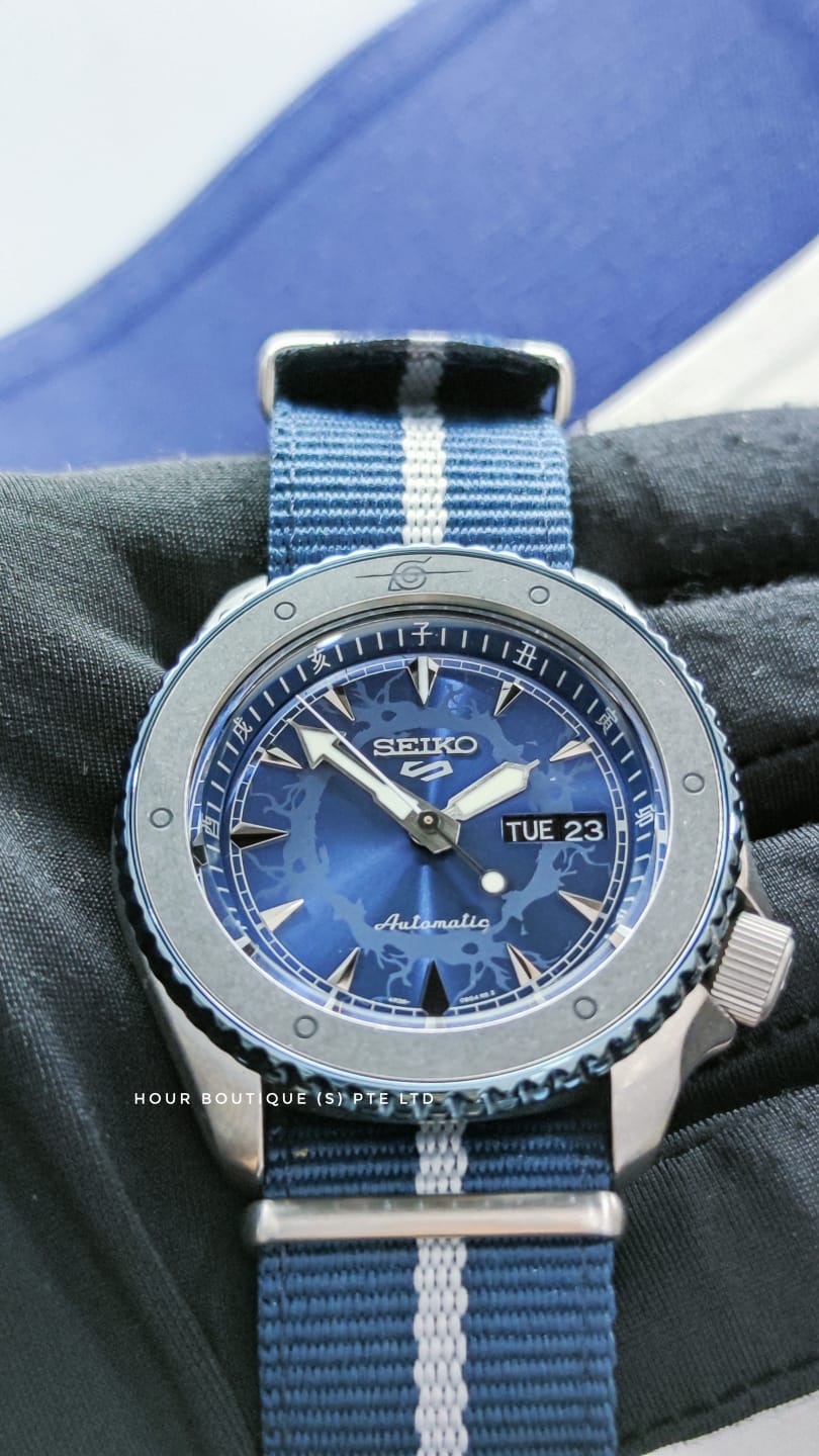 * We Have a Physical Watch Retail Shop ** All Products are Brand New in Box * * All Products come with 1 Year In House Warranty *Brand New with Tags and Complete SetDiameter 41mmNow $399- 6500PC LIMITED EDITION- SEIKO 4R36 SELF WINDING MOVEMENT - 40HRS POWER RESERVE - HARDLEX CRYSTAL- SPECIAL NARUTO SCROLL BOX- 100M WATER RESISTANT Available atHour Boutique3 Coleman StreetPeninsula Shopping Centre#01-03Singapore 179804Payment ByVisa, Masters, Amex, Nets, CashAbout Us- We are Established in 2009 , a Purely Watch Retail Shop that does repairs & Battery Replacements. - We specialise in selling Seikos, Gshocks & BabyG with some other Great Brands like Michel Herbelin & DeepBlue WatchThe company was founded in 1881, when Kintarō Hattori opened a watch andjewelryshop called "K. Hattori"(服部時計店Hattori Tokeiten?)in theGinzaarea ofTokyo, Japan. Eleven years later, in 1892, he began to produceclocksunder the nameSeikosha(精工舎Seikōsha?), meaning roughly "House of Exquisite Workmanship". According to Seiko's official company history, titled "A Journey In Time: The Remarkable Story of Seiko" (2003), Seiko is aJapaneseword meaning "exquisite" or "success" ("exquisite" is usually written 精巧 from Chinesejīngqiǎo, while the meaning "success" is usually written 成功 from Chinesechénggōng).The first watches produced under the Seiko brand appeared in 1924. In 1969, Seiko introduced theAstron, the world's first productionquartz watch; when it was introduced, it cost the same as a medium-sized car. Seiko later went on to introduce the first quartzchronograph. In the late 1980s, Seiko produced the firstKinetic watchthat combined the self-energizing attributes of anautomatic watchwith quartz accuracy. The watch is entirely powered by its movement in everyday wear.In 1985,Orientand Seiko established a jointfactory.The company was incorporated (K. Hattori & Co., Ltd.) in 1917 and was renamed Hattori Seiko Co., Ltd. in 1983 and Seiko Corporation in 1990. After reconstructing and creating its operating subsidiaries (such as Seiko Watch Corporation and Seiko Clock Inc.), it became aholding companyin 2001 and was renamed Seiko Holdings Corporation as of July 1, 2007.Seiko is perhaps best known for its wristwatches, all of which were at one time produced entirely in-house. This includes not only major items such as microgears, motors, hands,crystal oscillators, batteries, sensors, LCDs but also minor items such as the oils used in lubricating the watches and the luminous compounds used on the hands and the dials. Currently watch movements are made inShizukuishi, Iwate(SIIMorioka Seiko Instruments),Ninohe, Iwate(SII Ninohe Tokei Kogyo),Shiojiri, Nagano(Seiko Epson) and their subsidiaries in China, Malaysia and Singapore. The fully integrated in-house production system is still practised for luxury watches in Japan.