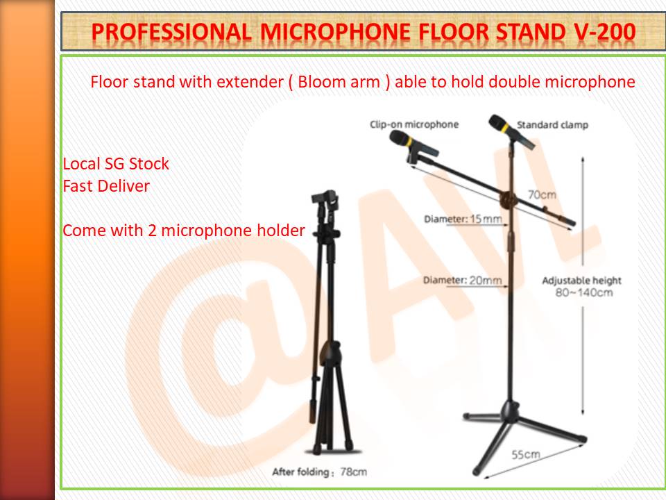 Professional Microphone floor stand , Bloom Arm included , able to hold up to 2 microphone , come with 2 microphone holder , LOCAL SG STOCK , FAST DELIVERY