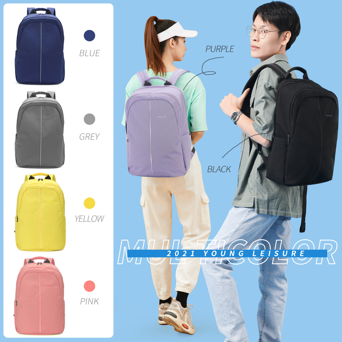 Tigernu Fashion Light Weight School Backpack Men College Male Laptop Backpack Bag Candy Colors Women Backpacks Rucksack Bag 2022