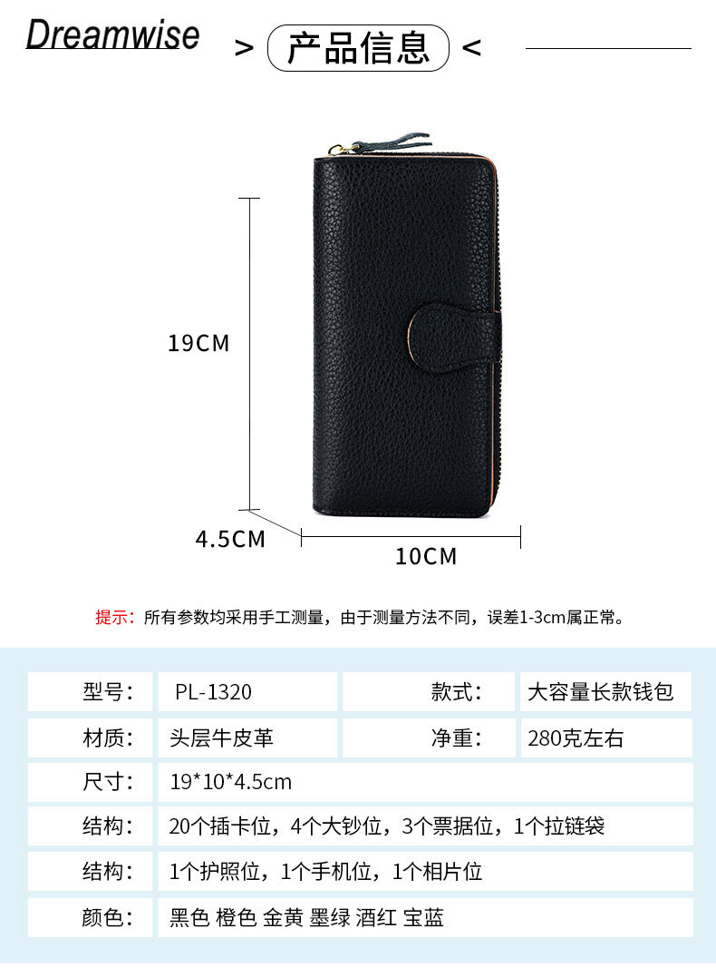 20个插卡位,4个大钞位,2个票据位,1个拉链袋,1个护照位,1个手机位