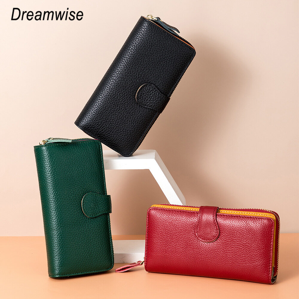 Dreamwise RFID Anti-theft Brush Long Wallets for Women New Real Soft Cowhide Clutch Coin Purse Ladies Card Holder Mobile Phone Bag