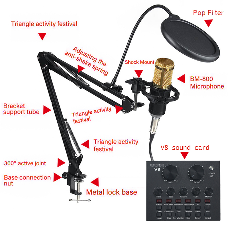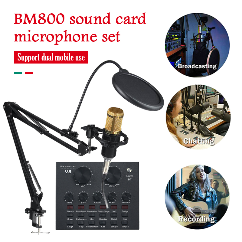 V8 Sound Card With BM800 Microphone Live Broadcast Equipment Full Set Of Mobile Phone Mic Kit Sing Vocal Audio