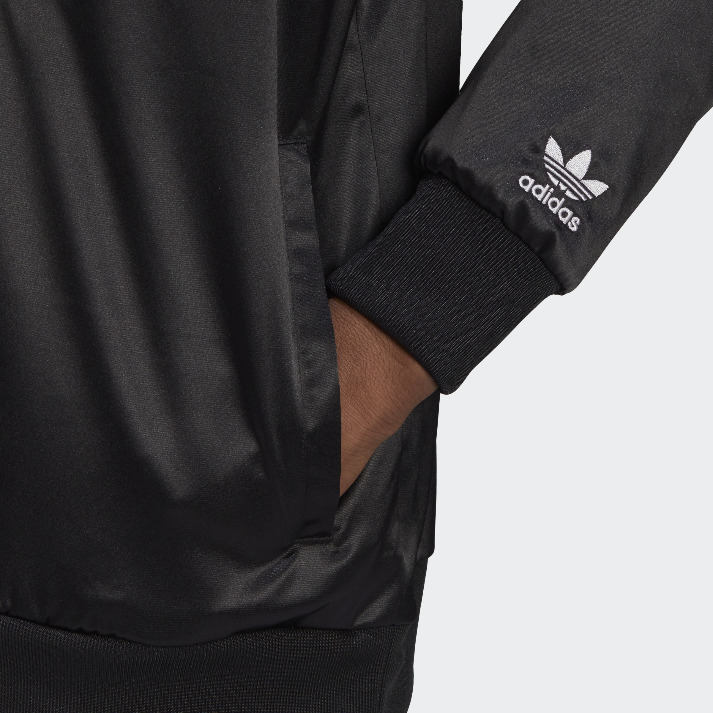 No need to hide your inspiration. Let your love of adidas style shine in this satin jersey. The football-inspired shape would be right at home under the stadium lights. But smooth, shiny fabric has other plans. Lavish vacays and nights out dancing? So much yes. This product is made with Primegreen, a series of high-performance recycled materials.