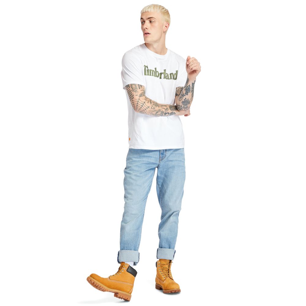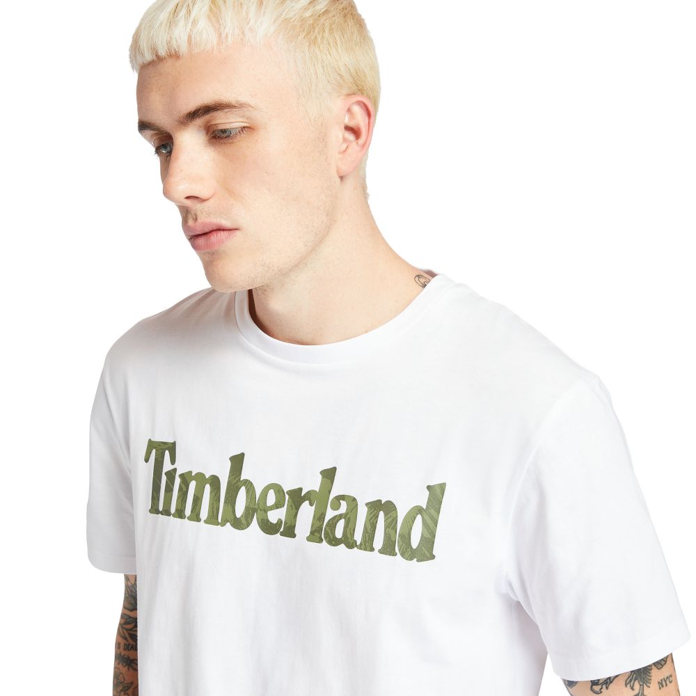 Timberland All Gender Linear-Logo Camo-Print T-Shirt White