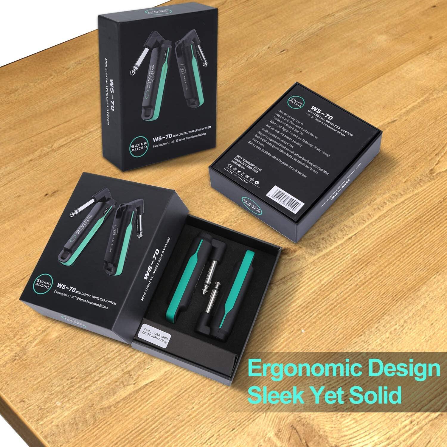 SWIFF WS-70 UHF Guitar Rechargeable Transmitter Receiver Mini Digital Wireless System Multifunctional Guitar System Suitable for Electric Guitar Bass/Bass/Electric Blowpipe