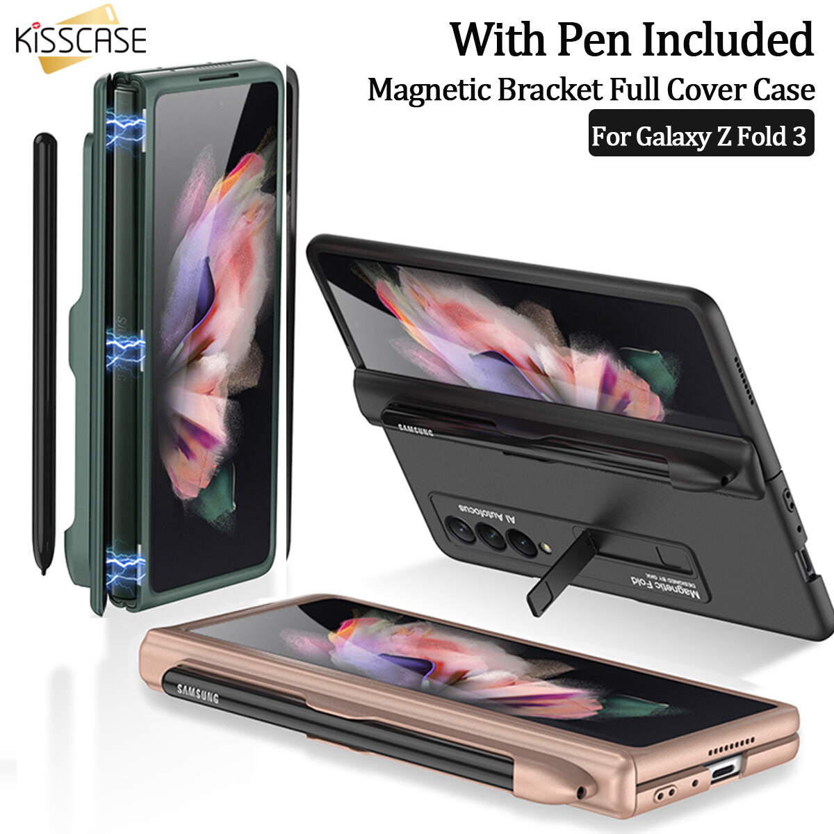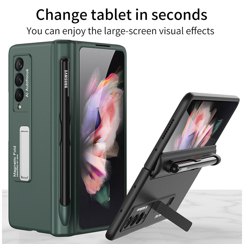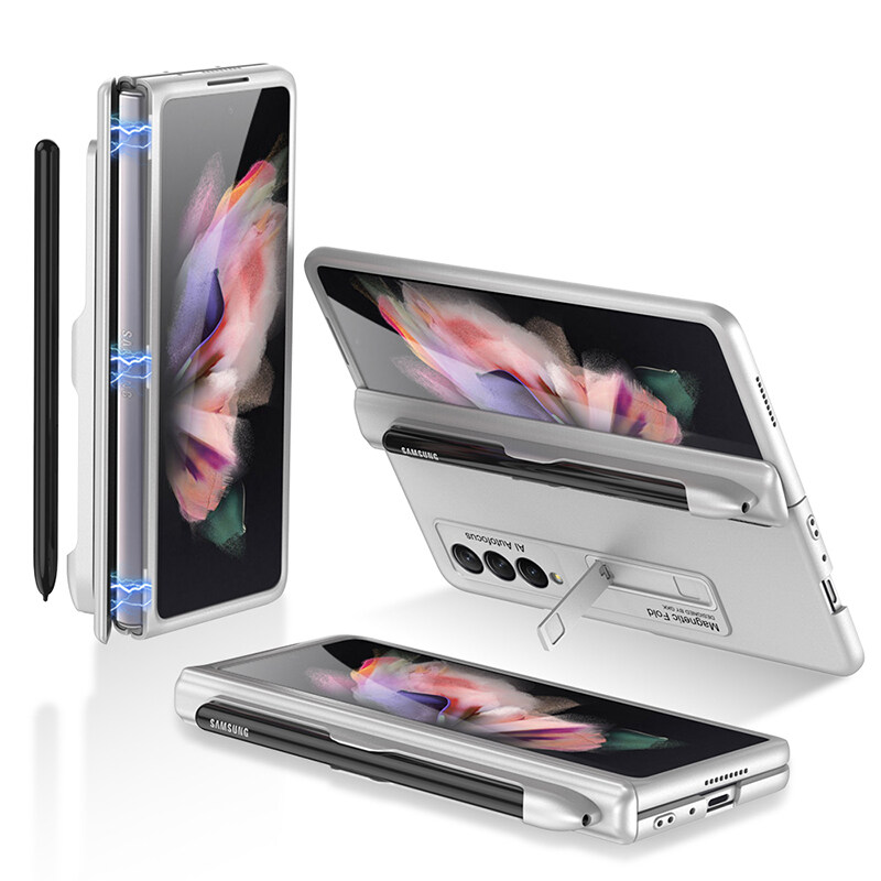 【With Pen Included】KISSCASE For Samsung Z Fold 3 5G Magnetic Bracket Holder Full Cover Shell For Samsung Phone Case for Samsung Galaxy Z Fold 3 5G Back Cover