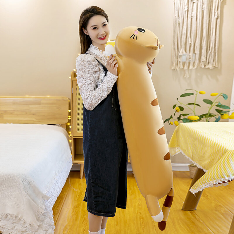 Lying Cat Doll Pillow Girl Sleeping Plush Toy Doll Soft Hug Sleeping Long Pillow Leg Clip Big Doll