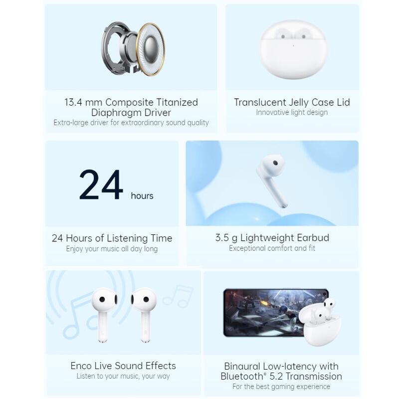 24 hours battery life / AI call noise reduction / 13.4mm dynamic driver
