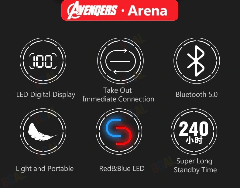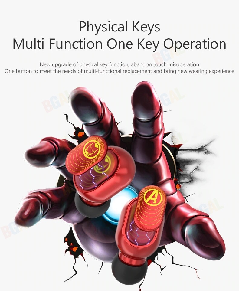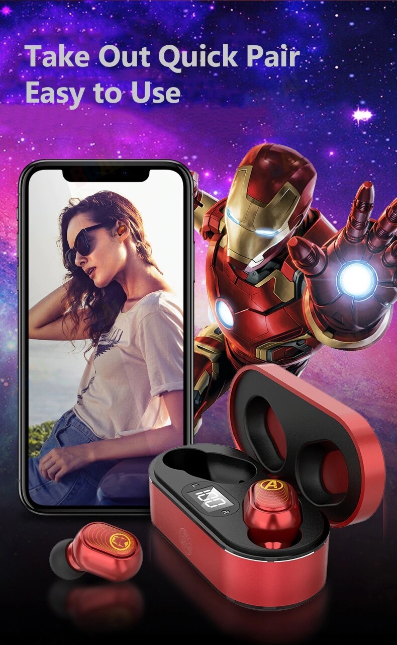 100% Authentic Marvel True Wireless Earphones Stereo Earbuds with LED Display Bluetooth V5.0 Wireless Earphones Iron Man Mini TWS Captain America Black Widow Spider Man BTMV09