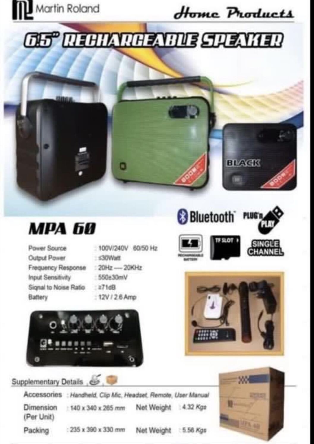 martin roland mpa60 with 2 handheld microphone