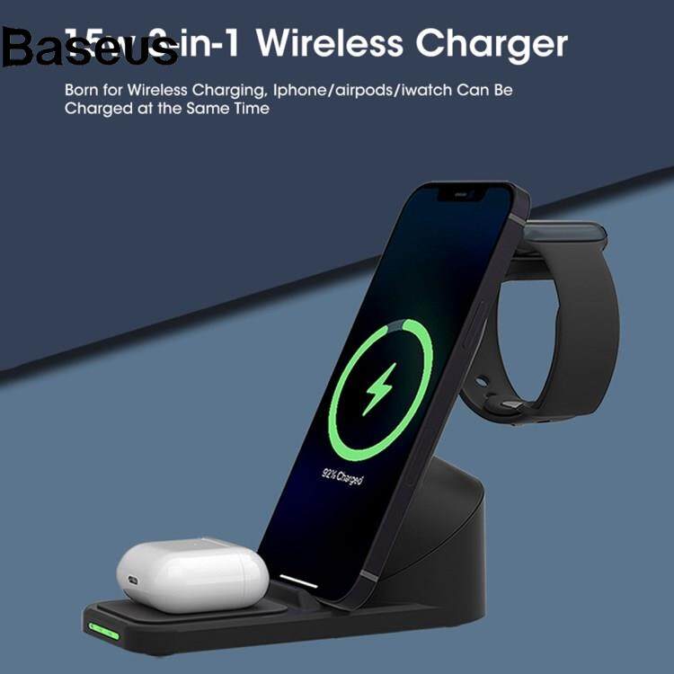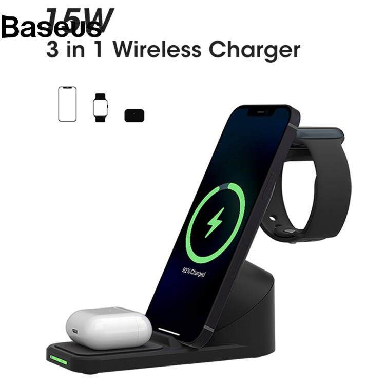 Baseus T8 Pro 3 in 1 Desktop Wireless Charger for iPhone / iWatch / AirPods 15W Max Rotatable Charging Dock Stand