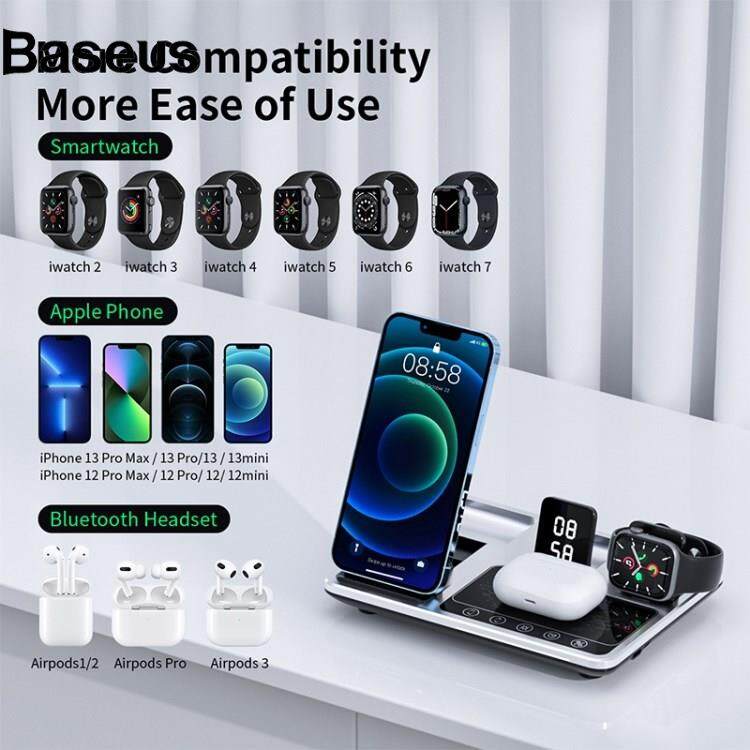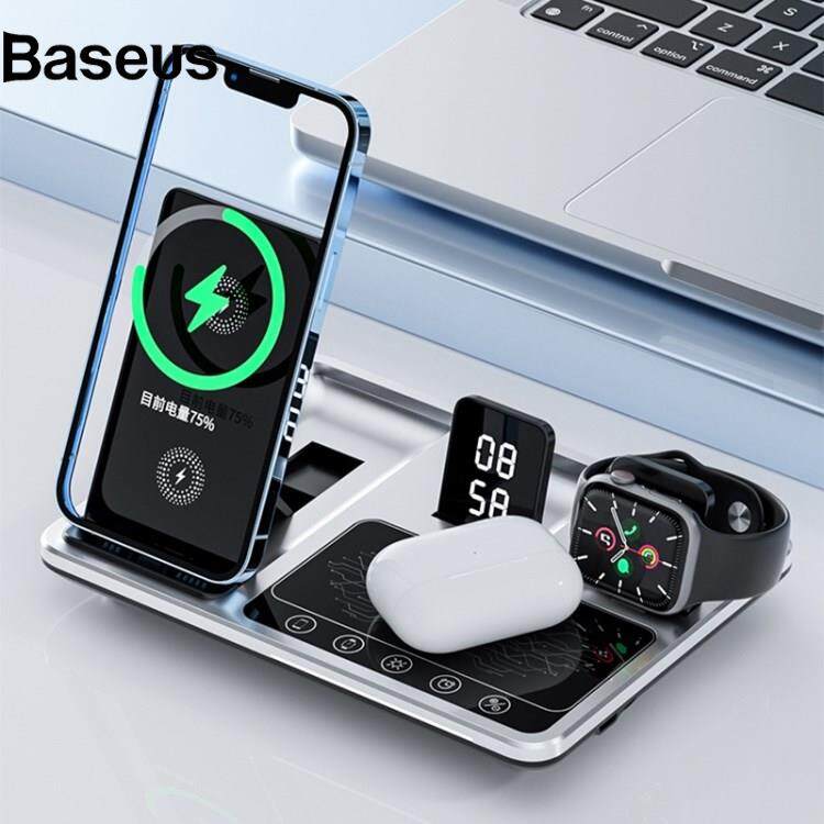 Baseus R11 Multifunctional 4 in 1 Wireless Charger Folding Portable Charging Station with Digital Display, White Light, Time Function