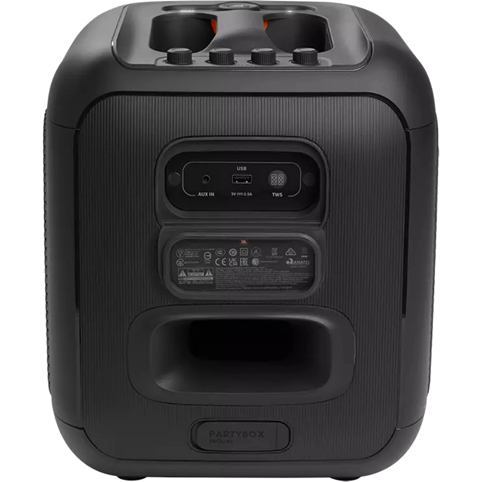 JBL Partybox Encore Portable party speaker with 100W powerful sound, built-in dynamic light show, included digital wireless mic, and splash proof design.