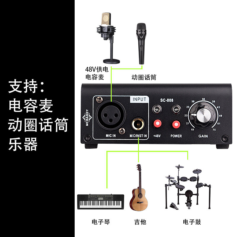 Professional Microphone Amplifier Compatible with Wired Wireless Moving Coil Microphone Capacitance Mic Musical Instrument Enhanced Sound Front Amplifier