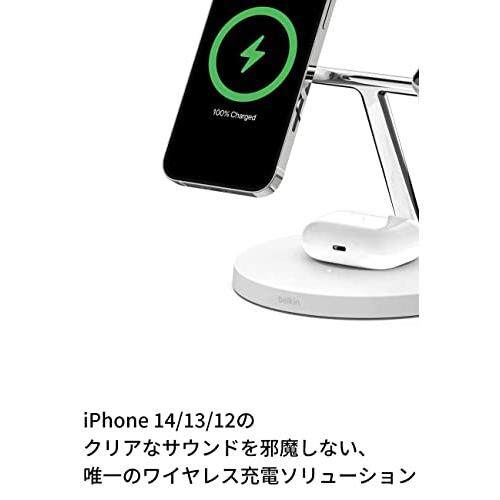 Belkin 3 in 1 MagSafe Charger, Maximum 15W Fast Charging, Wireless Charger, MagSafe Official Certification, Compatible with iPhone 14 / 13 / 12 / Apple Watch / AirPods, White WIZ009dqWH