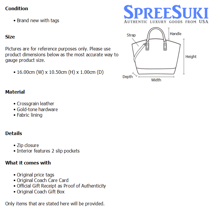 All our products are 100% authentic and purchased from Coach stores in USA. We are a reputable registered business in Singapore and it is illegal to sell counterfeit goods in Singapore. This product also comes with a gift receipt which is printed by the Coach store that we purchased the item from. It states the item that we purchased and the Coach store that it was purchased from, proving the authenticity of the item. Buy with confidence.